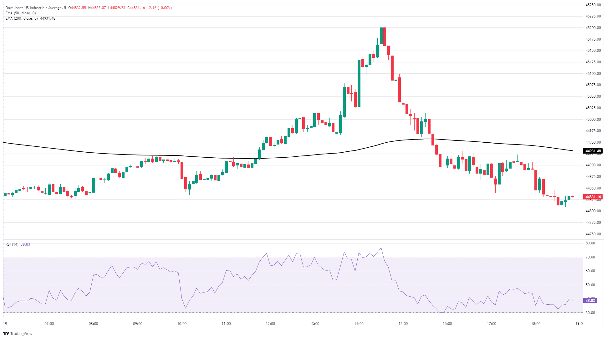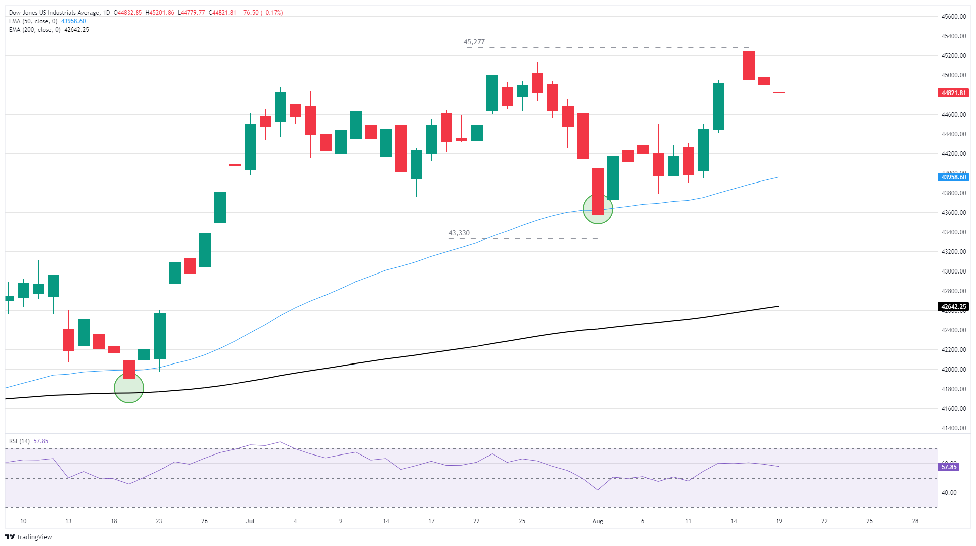 The Dow Jones is still grappling with the 45,000 handle as major names on the Dow take a knee on Tuesday, balancing out gains made on the other side of the stock index. 45,277 remains the level to beat for buyers to push the Dow Jones back into fresh record highs, but the major equity index could be poised for a further pullback with price action testing well north of the 50-day Exponential Moving Average (EMA) near 43,875.