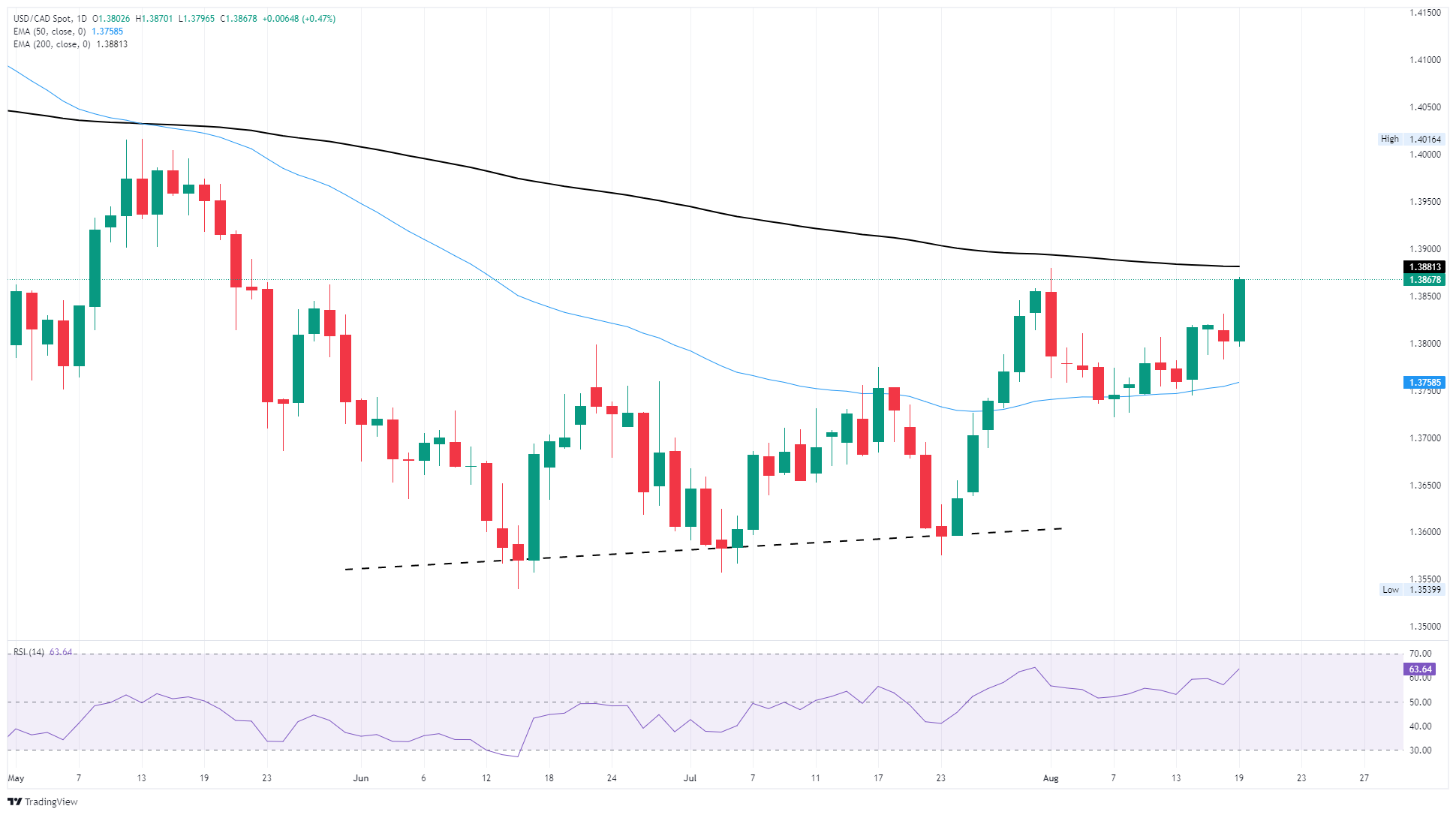 Tuesday’s bearish Loonie flows pushed USD/CAD back into multi-week highs, and the pair is now poised to close higher for the second week in a row if momentum holds through the end of the week. USD/CAD is inching back toward the 200-day Exponential Moving Average (EMA) near 1.3880, which should provide significant technical resistance for bidders to contend with.