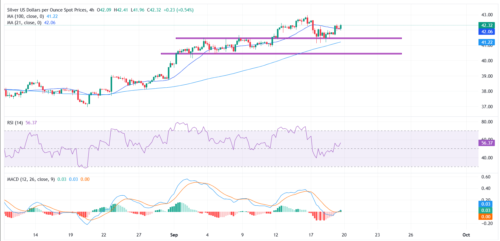 Silver (XAG/USD) extends its recovery on Friday, building on Thursday’s modest rebound after hitting its lowest level in over a week earlier this week. At the time of writing, the white metal is trading around $42.35, stabilizing above key technical levels as buyers attempt to regain control following a pullback from the 14-year high at $42.97.