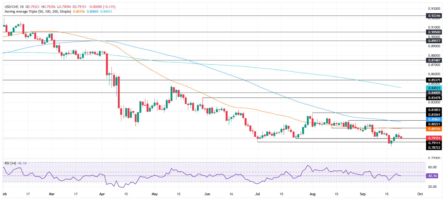 USD/CHF Price Forecast: Holds firm above 0.7900, yet remains bearish