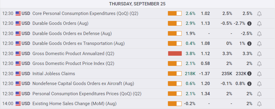 US annualized Gross Domestic Product (GDP) growth came in above expectations, climbing to 3.8% in Q2, well above the expected hold at 3.3%. However, here too lies complications: Despite a hard boost from Durable Goods Orders, which also rose well above expectations in Q2, US exports and imports both decline steeply, trimming almost half of a trillion dollars from the US trade market. US durable goods inventories also declined sharply in Q2, contracting by $50 billion. While all other growth metrics are still holding on the glowing side of good, Q2’s durable goods inventories contraction marks the steepest decline in that particular GDP segment since the global COVID-19 pandemic and the global financial crisis of 2008.