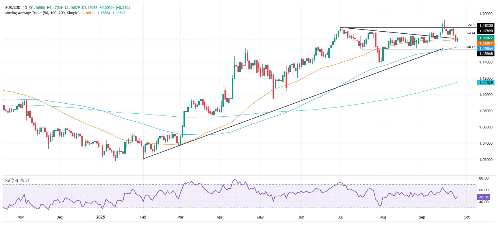 Technical outlook: EUR/USD recovers and meanders around 1.1700