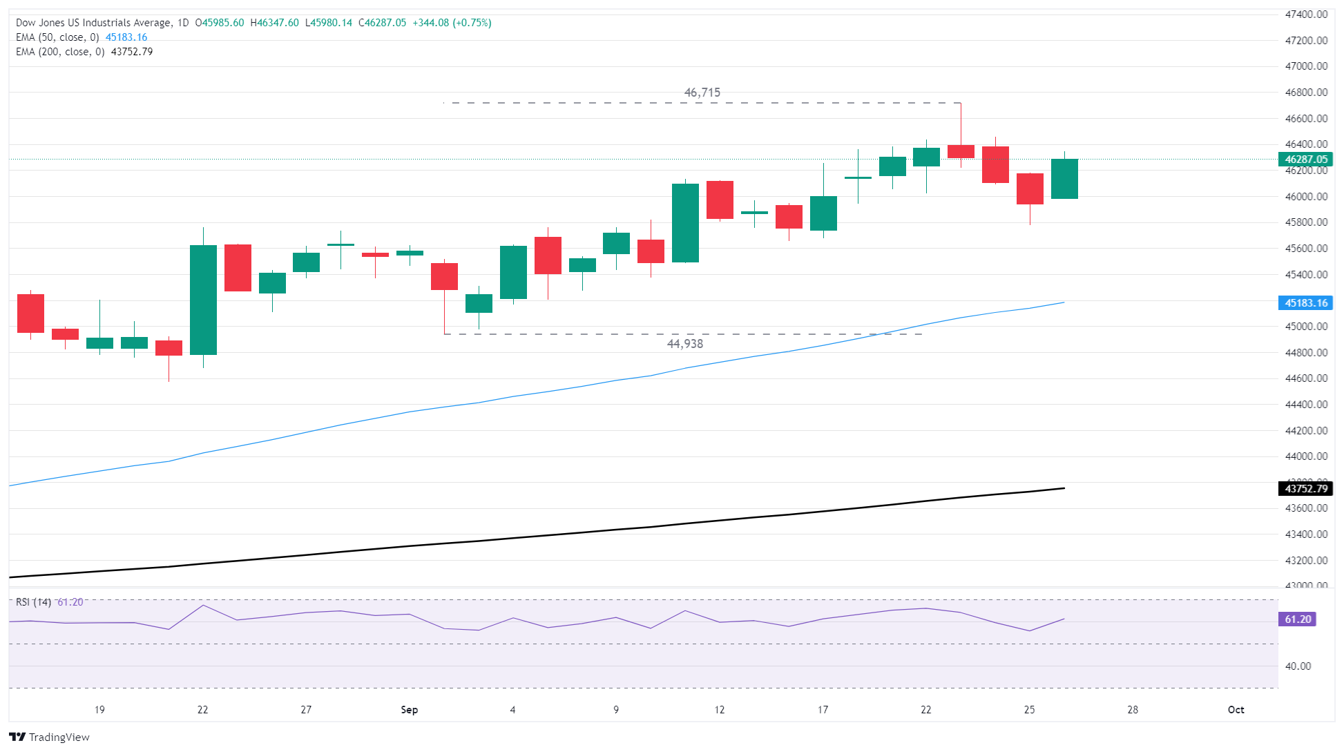 - The Dow Jones rebounded over 350 points on Friday, climbing back above 46,000.