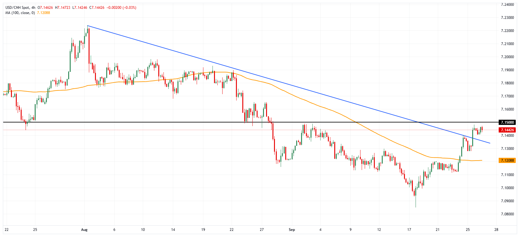 On the downside, the first support comes at 7.1355, where the downtrend line currently lies. Below this, USD/CNH could test the 100-period Simple Moving Average (SMA) on the 4-hour chart, currently at 7.1208.