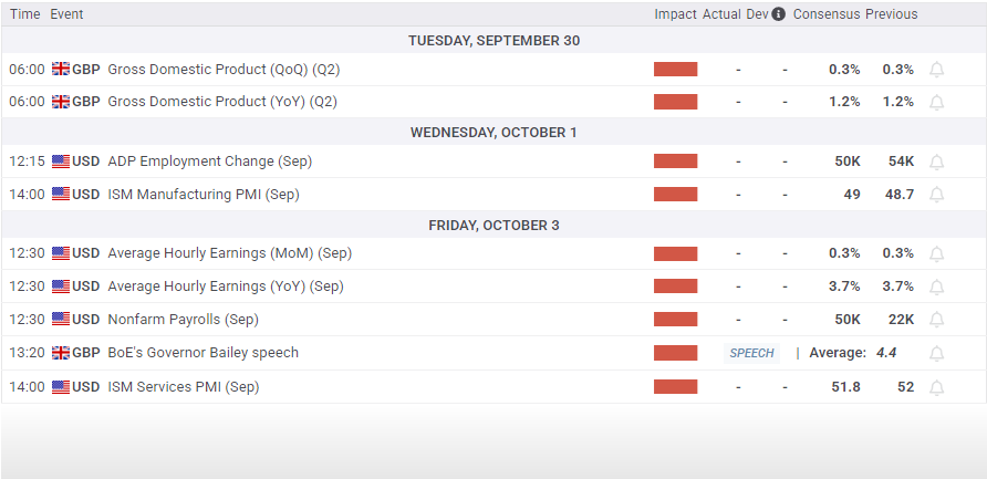 Final Q2 UK GDP growth is expected to hold steady at 0.3% QoQ and 1.2% YoY. The final GDP figure rarely deviates far from consensus. However, a steep enough unexpected tilt in either direction could send the Pound soaring or plummeting, depending on whether the data over- or under-shoots forecasts.