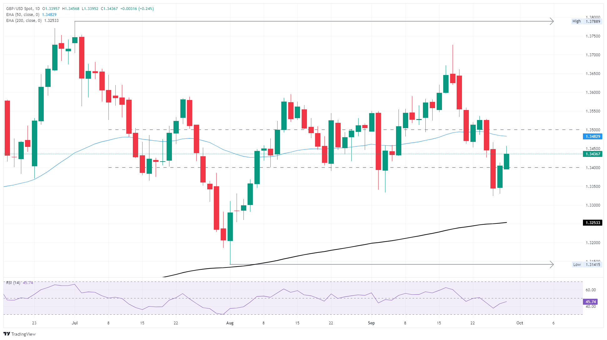 The Pound Sterling has extended a painfully slow bullish recovery after tumbling into seven-week lows last Thursday. GBP/USD is back above the 1.3400 handle for the time being, but near-term price action is poised to face further downside pressure from the 50-day Exponential Moving Average (EMA) acting as a technical ceiling near 1.3480.