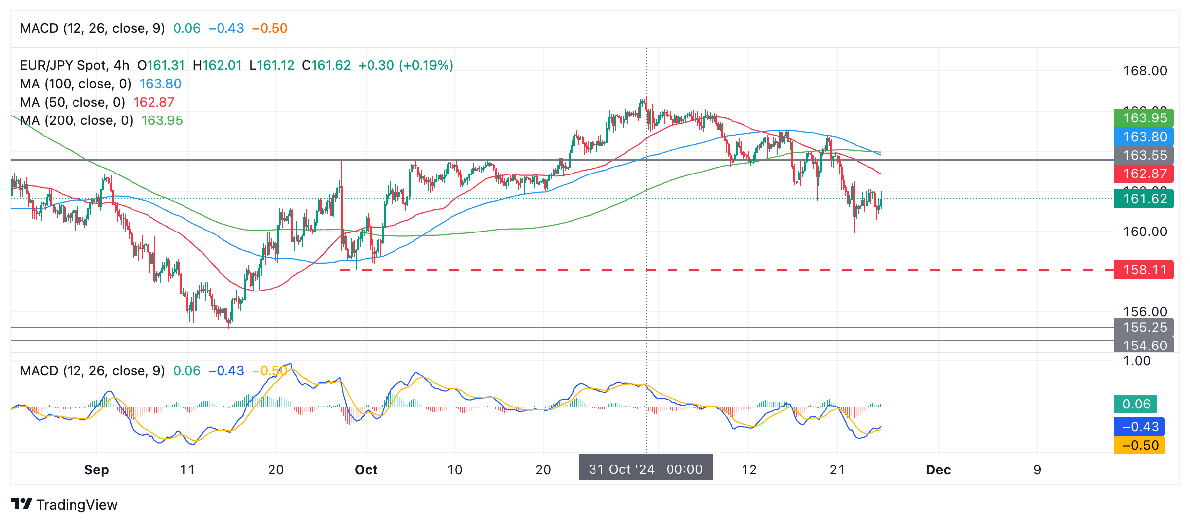 • EUR/JPY mundur dalam tren menurun yang telah berlangsung sejak awal November.