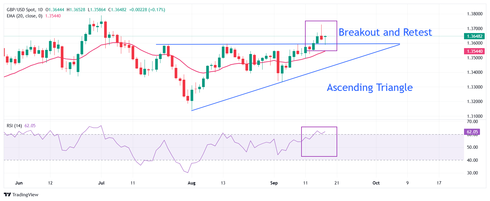 Pound Sterling jatuh ke dekat 1,3585 terhadap Dolar AS pada hari Kamis. Pasangan mata uang GBP/USD terkoreksi dan menguji penembusan pola grafik Ascending Triangle yang terjadi pada hari Senin. Exponential Moving Average (EMA) 20-hari yang miring ke atas di sekitar 1,3535 mengindikasikan bahwa tren jangka pendek adalah bullish.