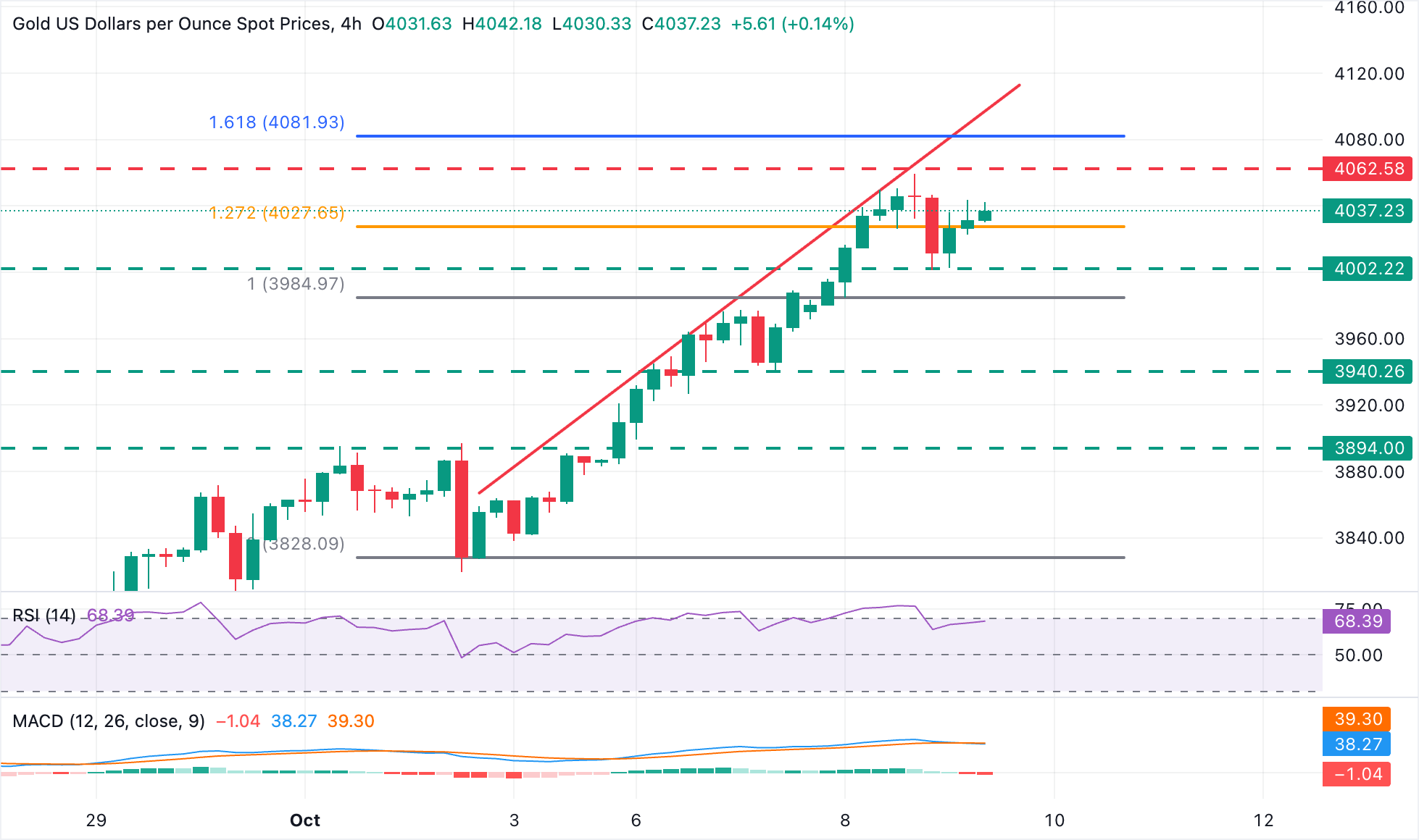 Dari sudut pandang teknis, Emas mempertahankan tren bullish-nya tetap utuh, dengan upaya bearish ditahan di atas level $4.000. RSI 4-jam mendekati tetapi belum mencapai level-level jenuh beli, yang mengindikasikan bahwa pengujian baru terhadap rekor tertinggi $4.060 ada di depan.