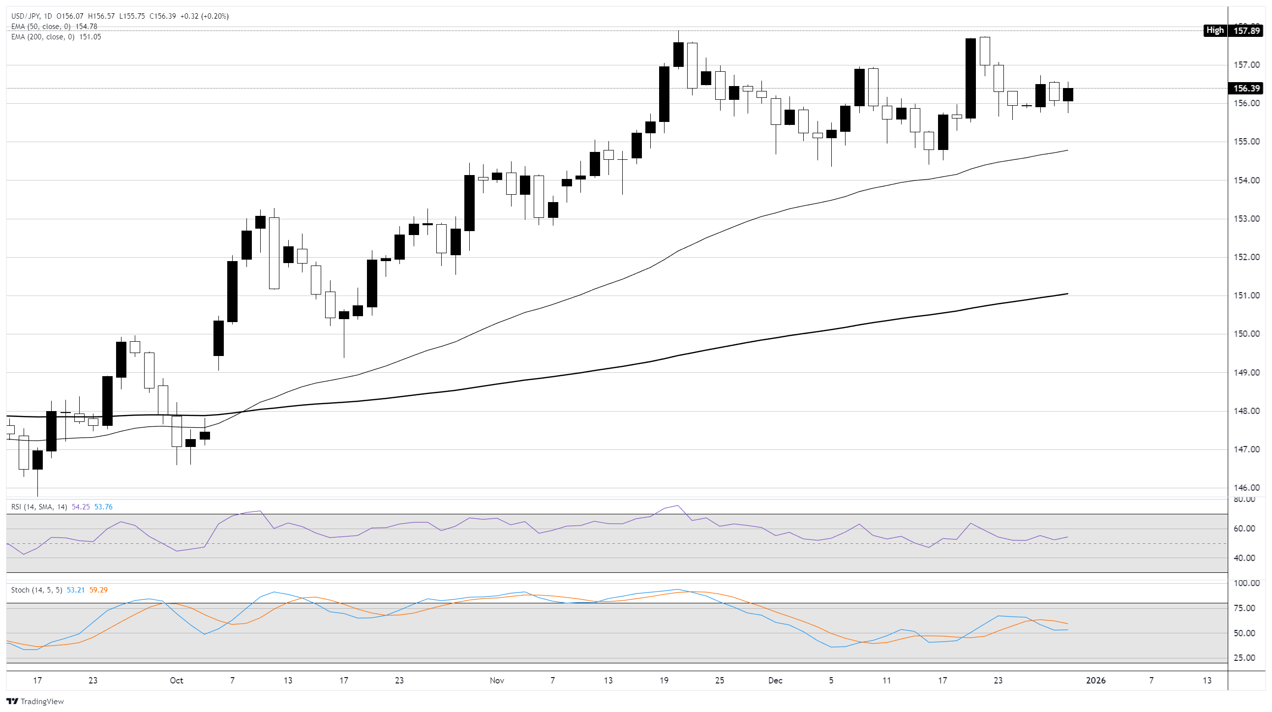 USD/JPY tetap terjebak dalam konsolidasi jangka pendek tepat di atas level 156,00 selama minggu terakhir tahun perdagangan 2025. Para trader Yen menghadapi hambatan di berbagai sisi, dengan Bank of Japan (BoJ) membawa banyak risiko ketidakpastian untuk pasar Yen.