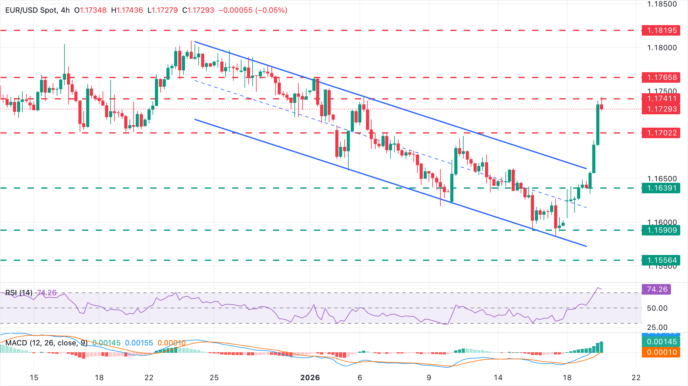 - Ancaman Trump tentang tarif tambahan pada negara-negara Eropa telah memicu putaran baru perdagangan "Sell America". Para investor menjual Dolar AS dan imbal hasil obligasi AS dalam proses de-dollarisation saat kepercayaan terhadap otoritas AS memudar. Ini telah mengirim Euro (EUR) naik hampir 1% terhadap Dolar AS dalam dua hari.