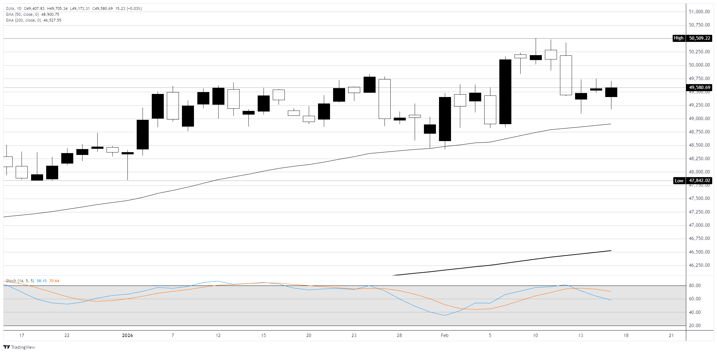 Dow Jones Industrial Average (DJIA) turun sekitar 120 poin, atau 0,24%, pada hari Selasa saat para investor kembali dari libur Hari Presiden dan langsung melanjutkan dari tempat mereka berhenti: menjual saham teknologi. S&P 500 kehilangan sekitar 0,5% sementara Nasdaq Composite memimpin kerugian, turun sekitar 0,8% karena nama-nama perangkat lunak dan semikonduktor menanggung beban kekhawatiran gangguan AI yang terus berlanjut. Sesi ini melanjutkan pola yang telah mengganggu pasar selama beberapa minggu: Dow dan S&P 500 kini telah turun dalam empat dari lima minggu terakhir, dan Nasdaq mencatat penurunan mingguan kelima berturut-turut menjelang minggu ini. Penurunan imbal hasil Treasury 10 tahun ke level terendah baru dua bulan di dekat 4,03%, setelah pembacaan Indeks Harga Konsumen (IHK) yang lebih dingin dari yang diharapkan pada hari Jumat, menawarkan dukungan terbatas bagi sektor-sektor yang sensitif terhadap suku bunga.