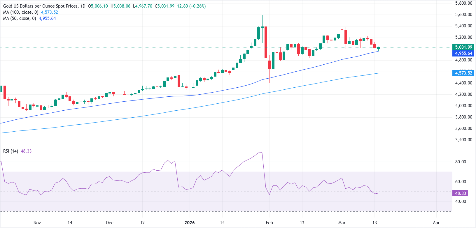 Pada saat berita ini ditulis, XAU/USD diperdagangkan di sekitar $4.990 setelah mencapai level tertinggi dalam perdagangan harian di $5.038 sebelumnya dalam perdagangan sesi Eropa.