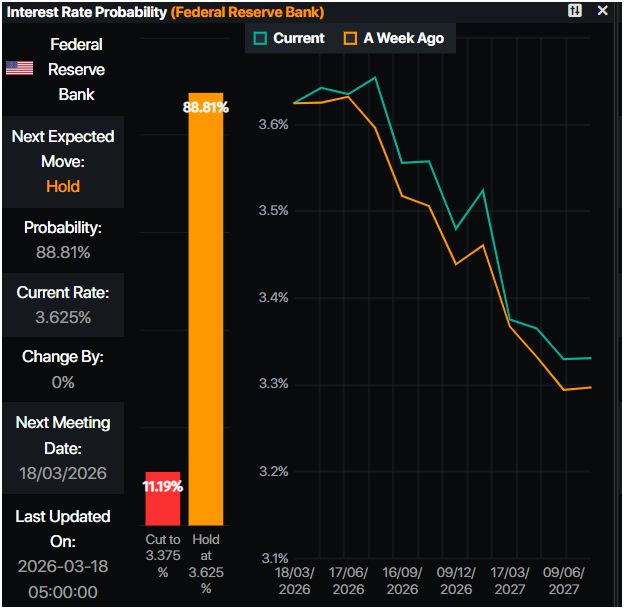 Setelah data tersebut, pasar uang tampak kurang yakin bahwa The Fed akan memotong suku bunga sama sekali pada tahun 2026. Pada saat berita ini ditulis, pasar swap memprakirakan pelonggaran 18,5 basis poin menjelang akhir tahun, didorong oleh tingginya harga energi yang dipicu oleh konflik di Timur Tengah.