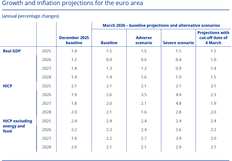 Proyeksi ECB menunjukkan penurunan yang jelas dalam prospek makro, dengan pertumbuhan yang lebih lemah dan inflasi yang lebih tinggi di bawah skenario dasar dan skenario buruk