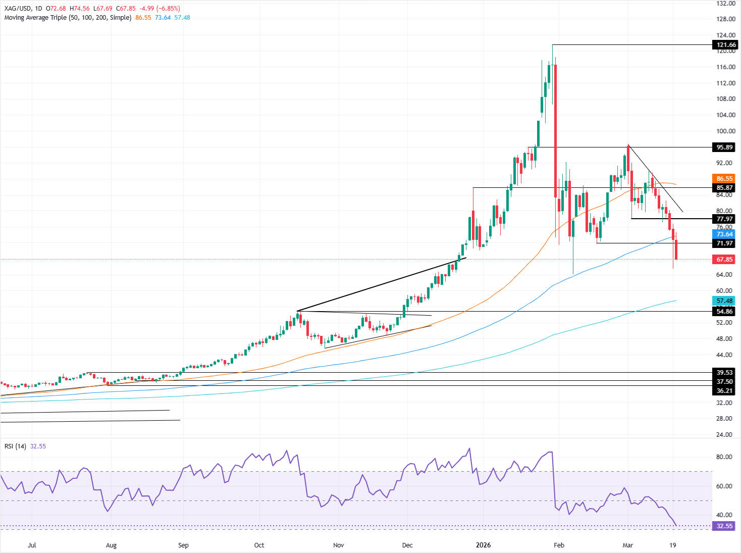 Prakiraan Harga Perak: XAG/USD Terjun Bebas, Menembus Level-Level Kunci di Bawah $70