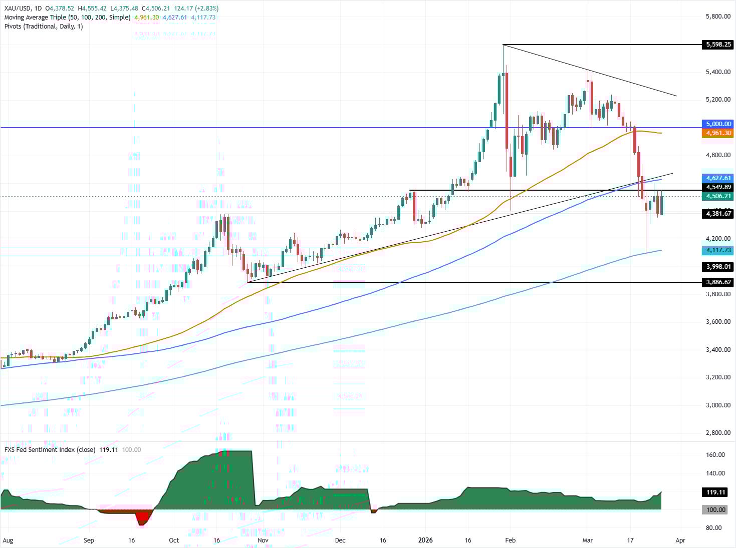 Di sisi bawah, jika Emas ditutup pada basis harian di bawah $4.500, support berikutnya adalah terendah harian 24 Maret di $4.306, diikuti oleh swing low 23 Maret di $4.098.