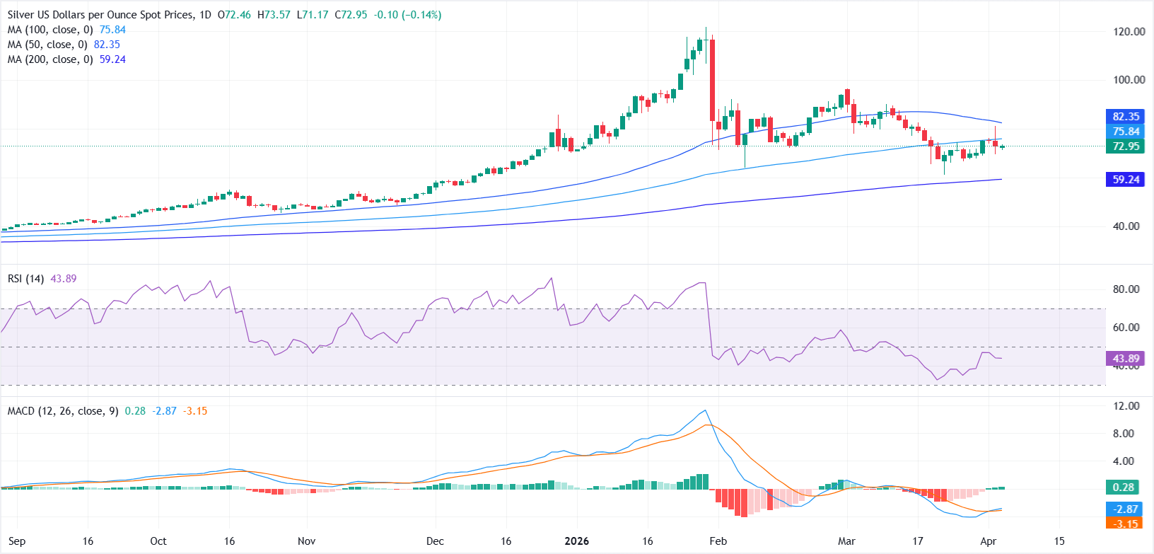 - Dari sisi teknis, XAG/USD tetap berada di bawah tekanan di bawah SMA 100 hari, menjaga bias jangka pendek tetap lemah.