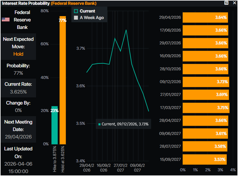 Akibatnya, ekspektasi bahwa Federal Reserve (The Fed) akan menurunkan suku bunga tidak ada, menurut data dari Prime Market Terminal, yang mencerminkan bahwa suku bunga Fed funds akan tetap di kisaran 3,50%-3,75%, stabil pada tahun 2026.