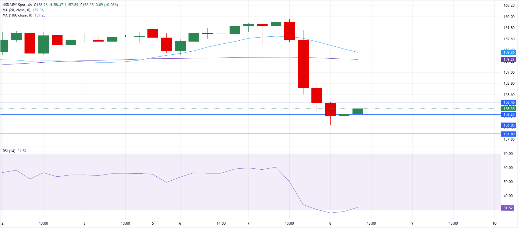 Pasangan mata uang USD/JPY jatuh mendekati wilayah 158,30 pada hari Rabu, meskipun Amerika Serikat (AS), Iran, dan Israel telah menyetujui gencatan senjata dua minggu.