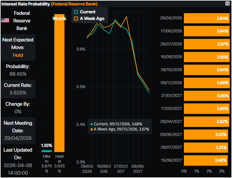 Bank-bank sentral besar merasa lega dari risiko putaran kedua inflasi yang dipicu oleh guncangan energi yang sedang berlangsung yang menyalahkan konflik tersebut. Para pedagang memprakirakan Federal Reserve (The Fed) akan mempertahankan suku bunga tidak berubah sepanjang tahun, tetapi pada saat berita ini ditulis, mereka telah memperhitungkan pelonggaran hampir 10 basis poin menuju akhir tahun, menurut Prime Market Terminal.