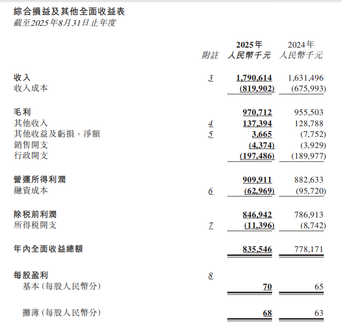 报告期内,中国春来营收增速为9.8%。从增速角度看,在港股高教板块中,这一表现属于稳健增长范畴。然而,真正彰显其核心竞争力的,是其惊人的盈利转化效率。