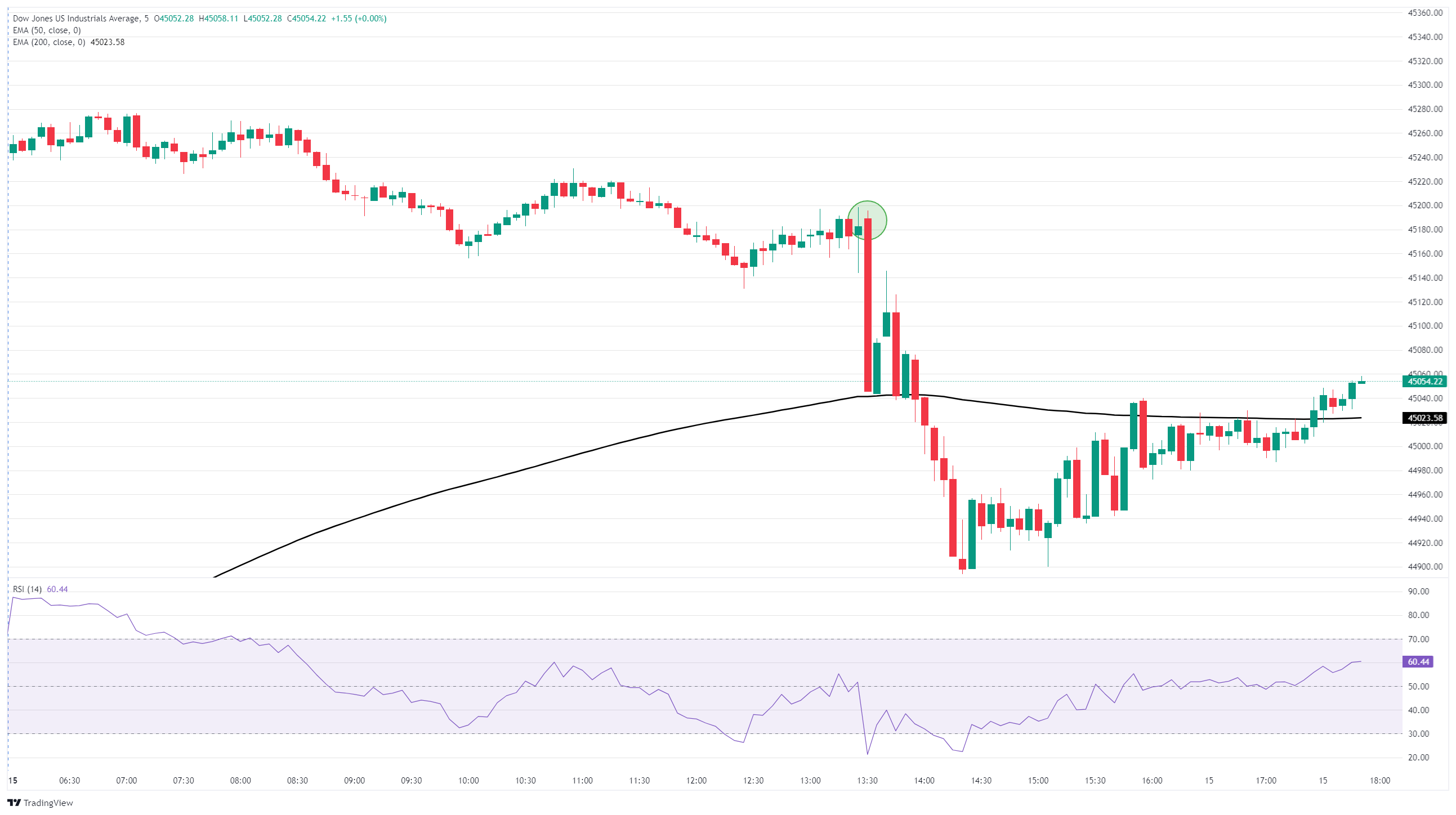 The Dow Jones has tapped in a new all-time high of 45,277 but remains caught in congestion near the 45,000 major handle while rounding the corner into the closing bell. Fundamentals have driven most of the meaningful near-term price action as the Dow continues to drift higher following a technical bounce from the 50-day Exponential Moving Average (EMA) after chalking in the last swing low near 43,330. The 50-day EMA is now providing a technical floor near 43,885, ready to catch any short-term downturns.