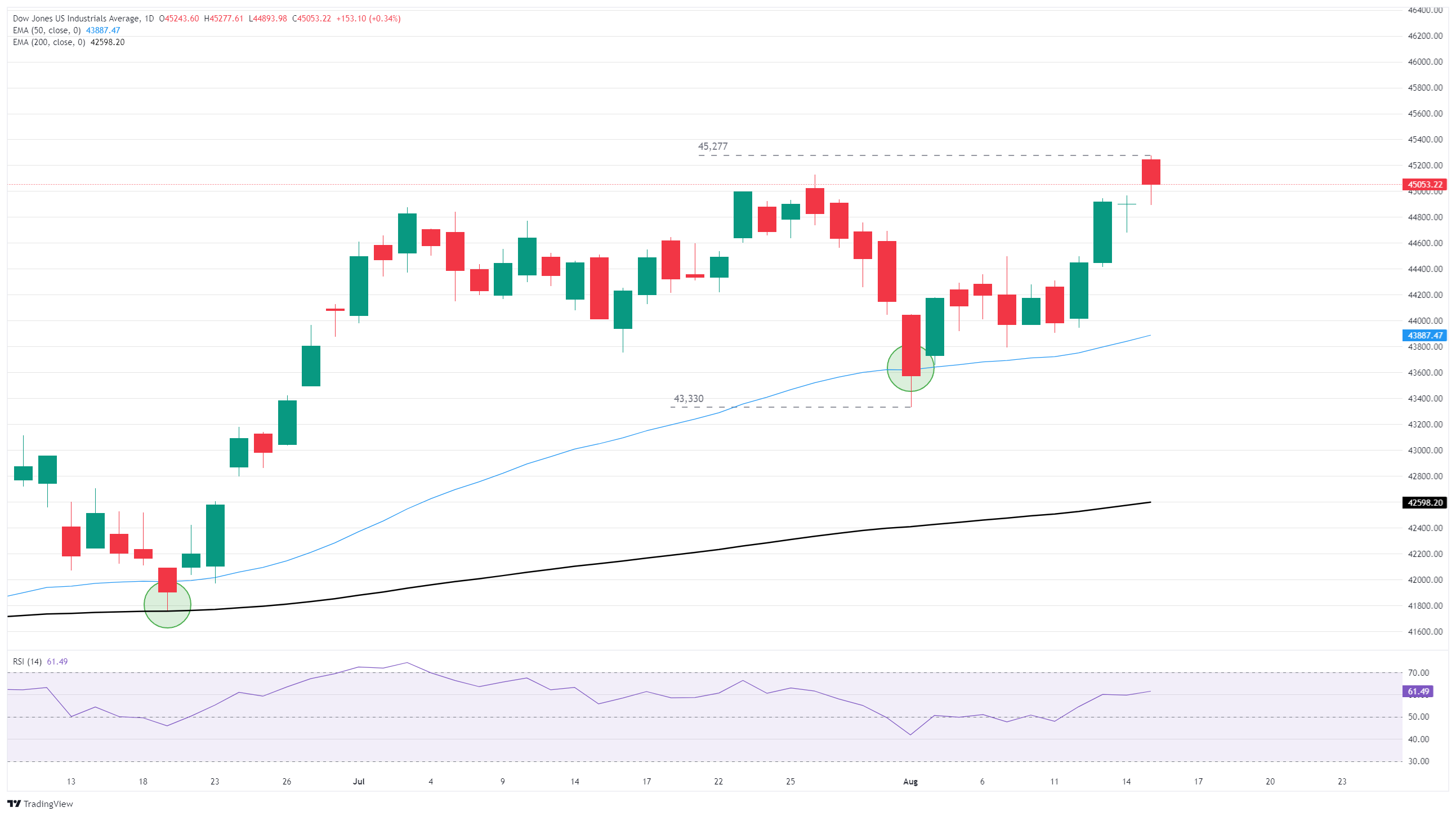 The Dow Jones Industrial Average (DJIA) surged to record highs early on Friday, touching chart territory north of 45,250 for the first time ever. However, tepid consumer sentiment data and a looming meeting between United States (US) President Donald Trump and Russian President Vladimir Putin are weighing on investor sentiment to wrap up the trading week.