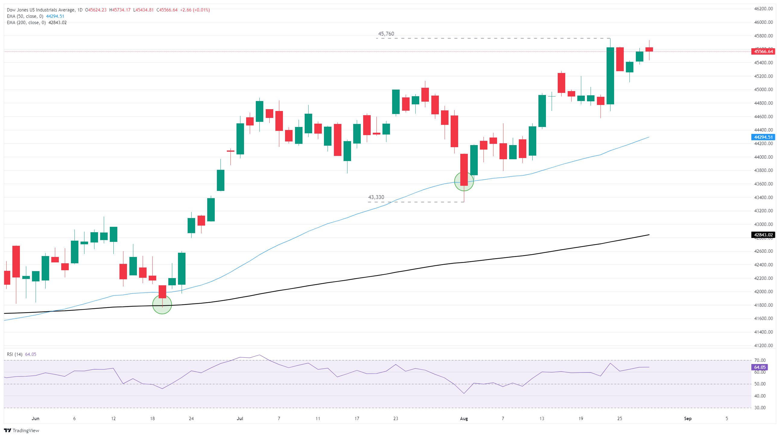 The Dow Jones Industrial Average (DJIA) ground to a halt on Thursday, stuck near the 45,500 region as investors await the latest batch of United States (US) Personal Consumption Expenditures Price Index (PCE) inflation data, due on Friday. The Dow is still holding close to record highs reached last week, but further topside momentum will require further evidence that markets are going to get their long-awaited interest rate cut in September.
