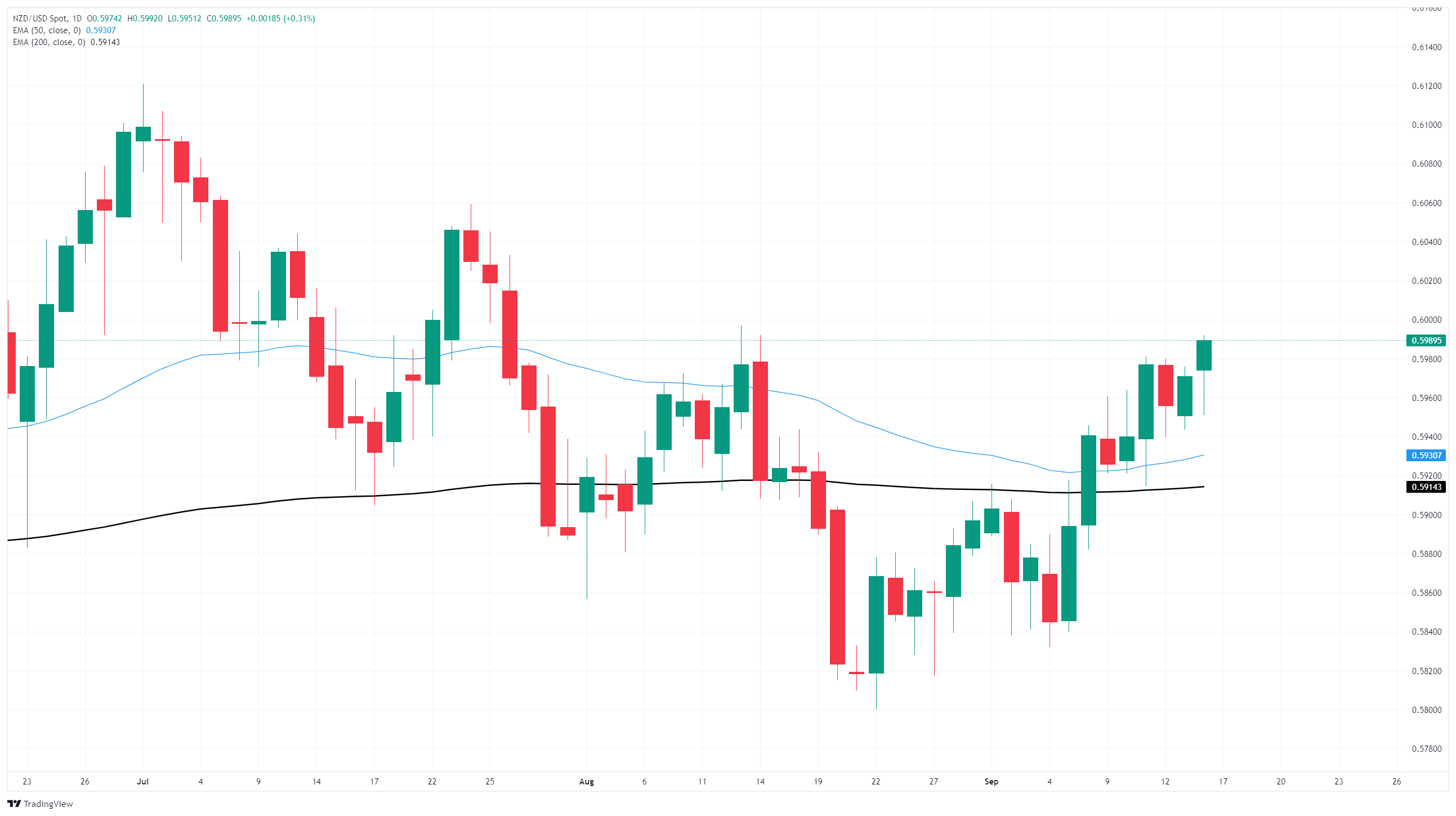 NZD/USD climbed through key technical resistance on Tuesday, chalking in another bullish candle and grinding closer toward the 0.6000 handle as the Greenback tumbles across the board. The Federal Reserve (Fed) is on deck for Wednesday, crimping global market flows as investors hunker down ahead of the key central bank outing.