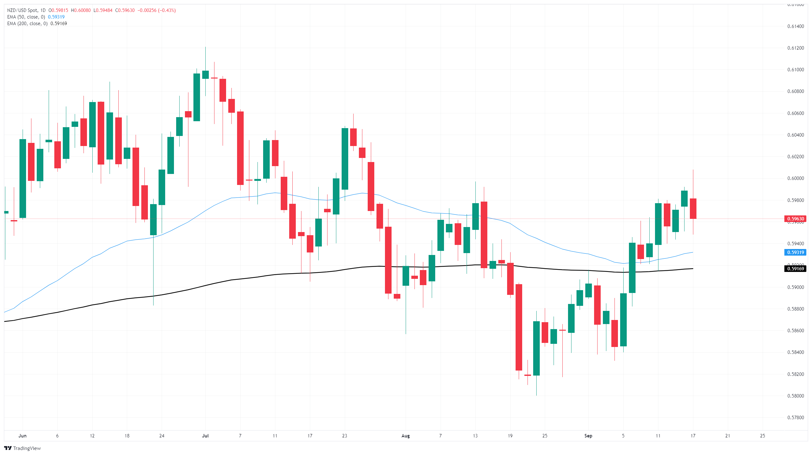 NZD/USD broke out of a messy descending channel on daily candlesticks, but the 0.6000 level remains a tricky barrier for price action to vault over, and bullish momentum is likely to remain capped as bids wrestle to stay above the 200-day Exponential Moving Average (EMA) near 0.5933.
