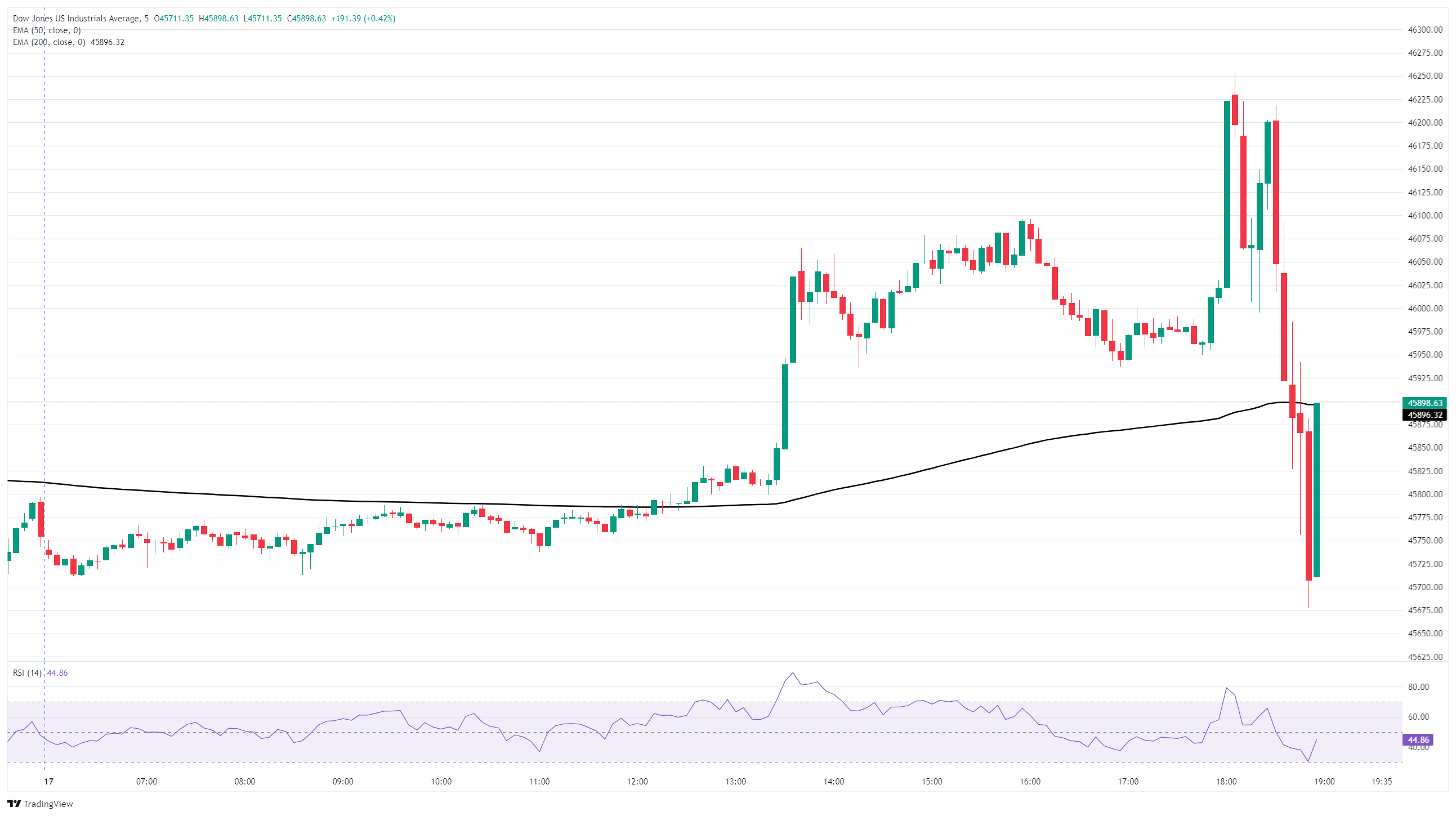 The Dow Jones touched chart territory north of 46,250 for the first time ever following the Fed's rate announcement and SEP adjustment. However, Fed Chair Jerome Powell cautioned during his post-rate call press conference that the Fed is still tracking data from one release to the next, warning that the SEP is not a "preset course". US equities gave up the day's bullish gains and backslid back below 46,000 on reaction.