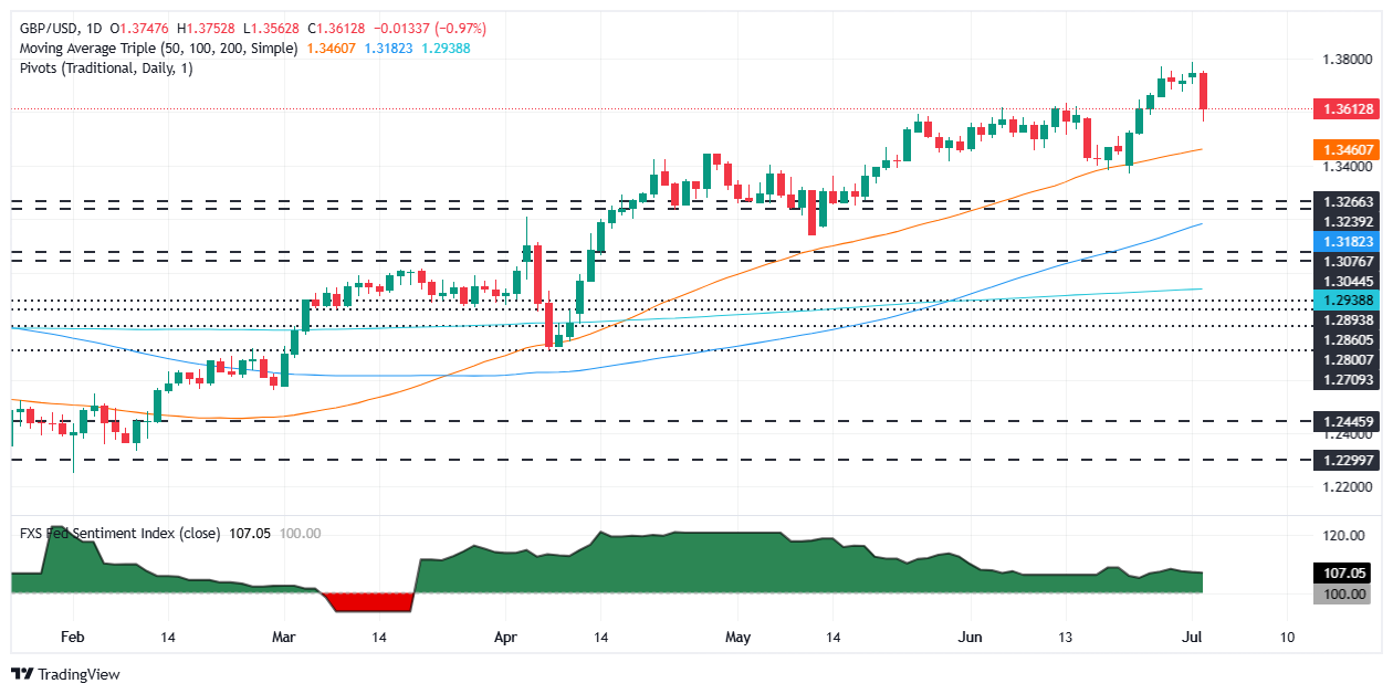 Pound Sterling (GBP) anjlok tajam, mendekati lebih dari 1% atau 170 pips, pada hari Rabu terhadap Dolar AS (USD) di tengah spekulasi yang berkembang bahwa Kanselir Keuangan, Rachel Reeves, bisa digantikan oleh Perdana Menteri, Keir Starmer. GBP/USD diperdagangkan pada 1,3610, setelah mencapai level terendah harian 1,3562.
