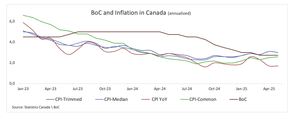 Ketika datang ke kebijakan moneter, indikator inflasi yang diawasi ketat oleh BoC menunjukkan IHK Umum naik pada tingkat tahunan 2,6%, IHK Trimmed naik 3,0%, dan IHK Median meningkat 3,1% selama dua belas bulan terakhir.