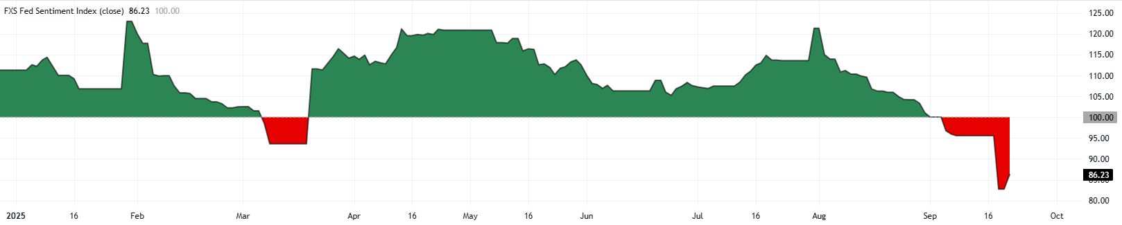 Indeks Sentimen The Fed FXStreet tetap berada di wilayah dovish di 86,23 meskipun sedikit pulih.