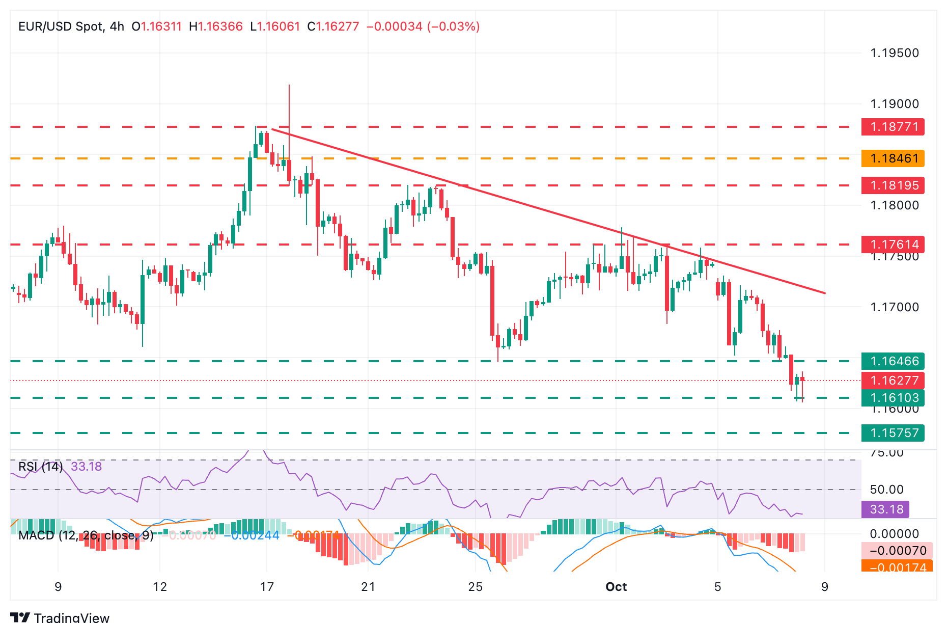 - Ketidakpastian politik yang semakin meningkat di Prancis terus melemahkan Euro minggu ini, sementara kekhawatiran para investor terhadap penutupan pemerintah federal AS yang berkepanjangan mulai merugikan sentimen pasar dan meningkatkan permintaan USD sebagai aset safe-haven. Dalam ketidakadaan data makroekonomi utama yang dapat mengubah pandangan ini, tren bearish EUR/USD memiliki ruang lebih lanjut untuk bergerak.