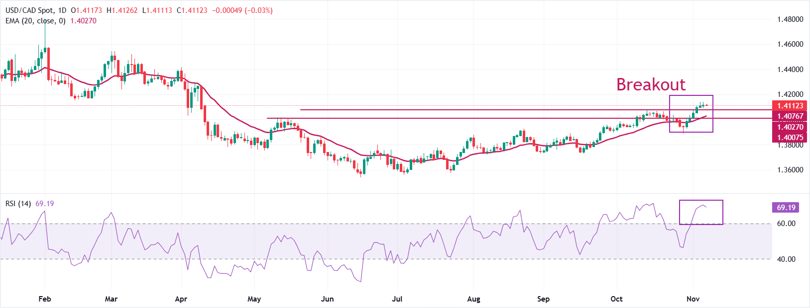Dolar Kanada (CAD) mendapatkan momentum dan menarik USD/CAD kembali di bawah support 1,4100 setelah rilis tersebut, membalikkan kenaikan harian selama enam hari berturut-turut.