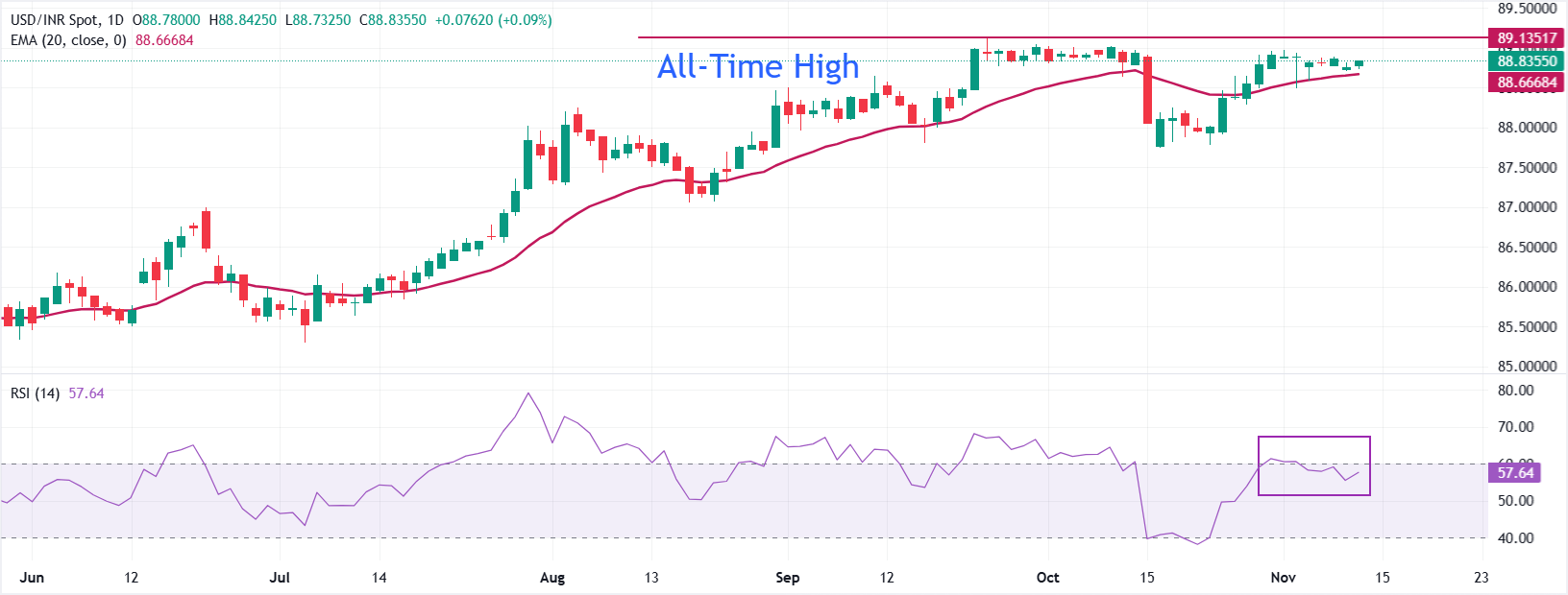 Analisis Teknis: USD/INR Tetap Di Atas EMA 20-Hari