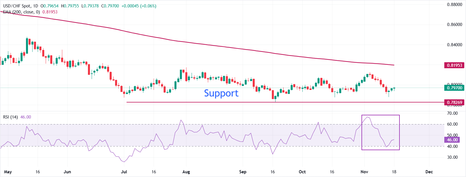 - USD/CHF naik mendekati 0,7972 seiring Dolar AS melanjutkan kenaikannya.