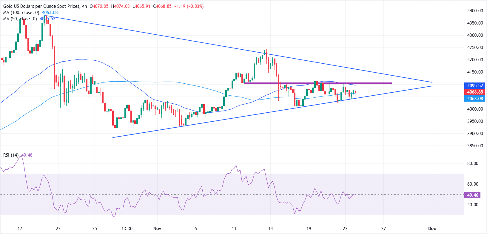 Analisis teknis: XAU/USD terhenti di bawah $4.100, RSI netral menyoroti kurangnya keyakinan
