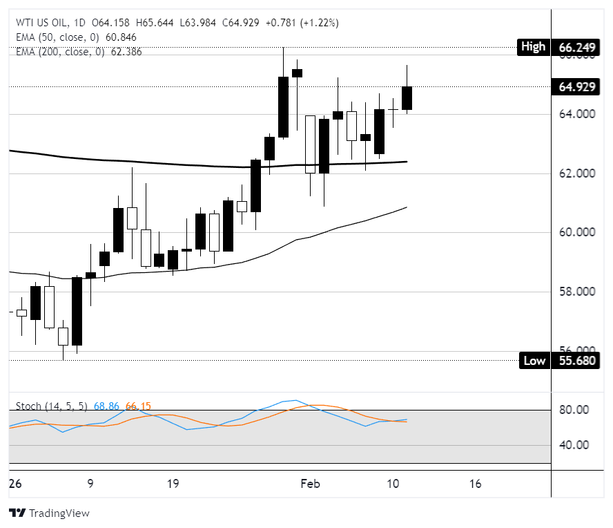 - Pembangunan inventaris EIA yang mengejutkan sebesar 8,53 juta barel membatasi potensi kenaikan di dekat swing high $66,25