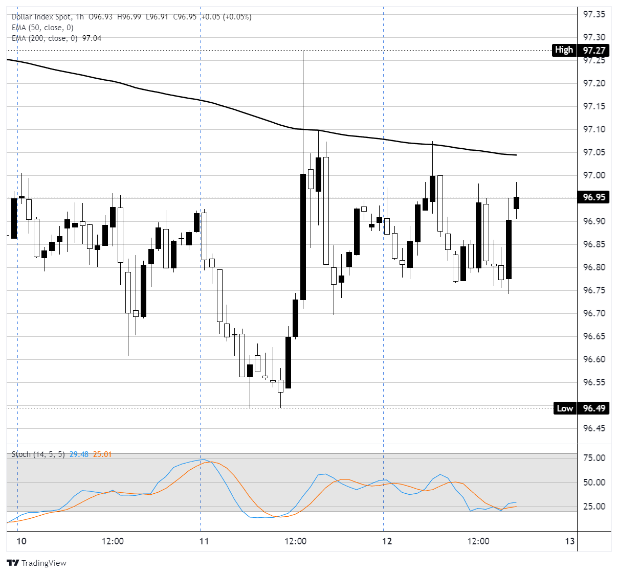 - Indeks Dolar AS bergerak datar di dekat 96,92 menjelang rilis Indeks Harga Konsumen yang tertunda pada hari Jumat
