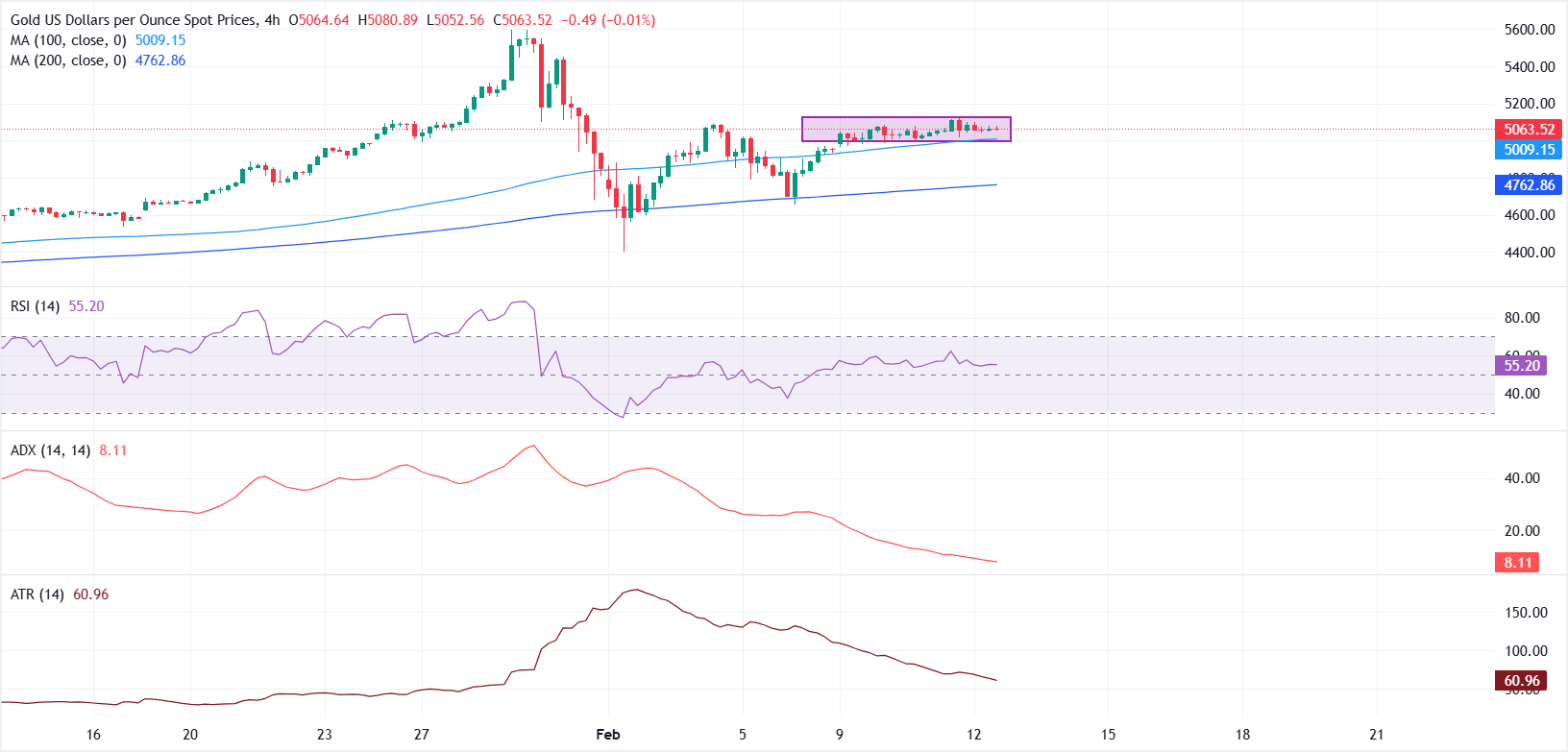 Analisis teknis: XAU/USD mengkonsolidasikan di atas $5.000 saat momentum memudar