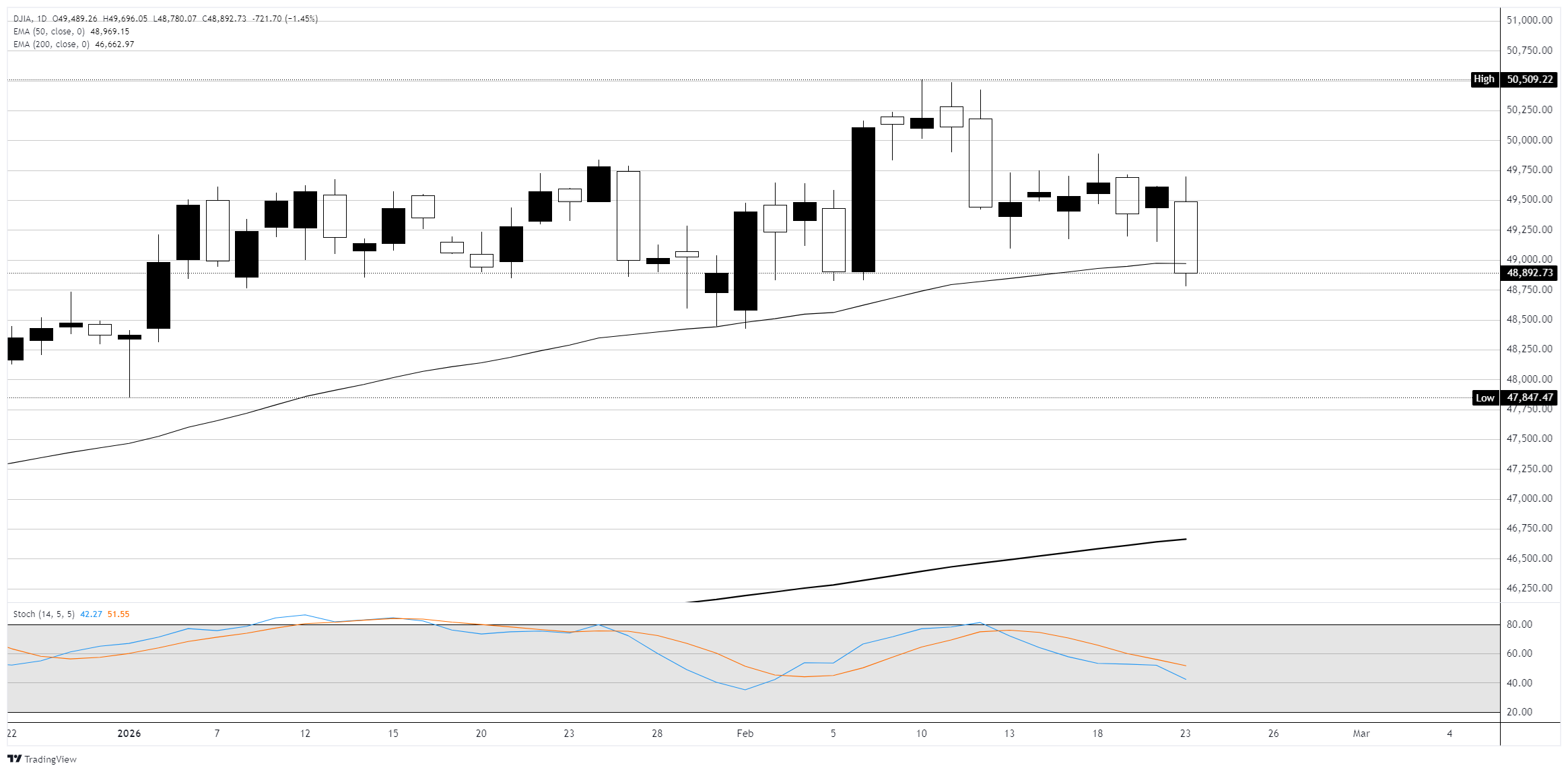 Dow Jones Industrial Average Merosot di Bawah 49.000 saat Kekacauan Tarif Kembali