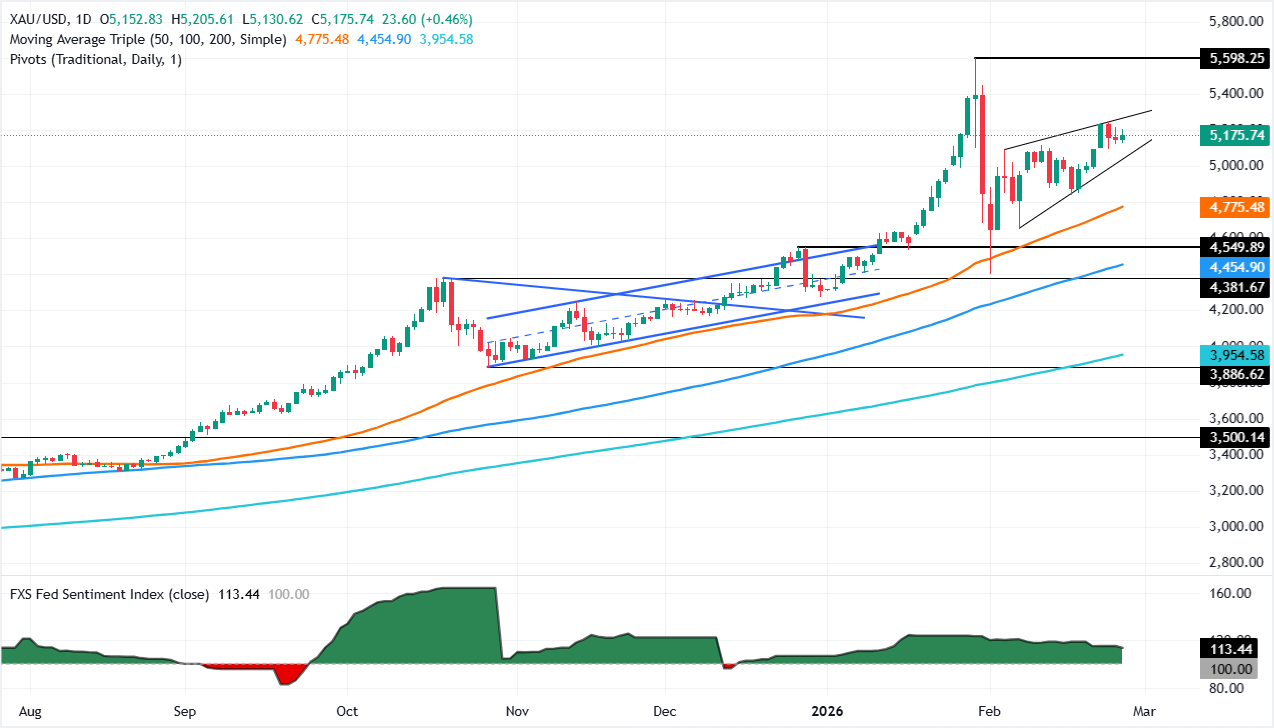 Harga Emas tetap stabil pada hari Kamis selama perdagangan sesi Amerika Utara karena ketegangan geopolitik tetap tinggi meskipun dimulainya putaran ketiga perundingan antara AS dan Iran di Jenewa. Selain itu, data yang solid dari AS menjaga harga bullion tetap terbatasi. Pada saat berita ini ditulis, XAU/USD diperdagangkan di $5.179, naik 0,30%.