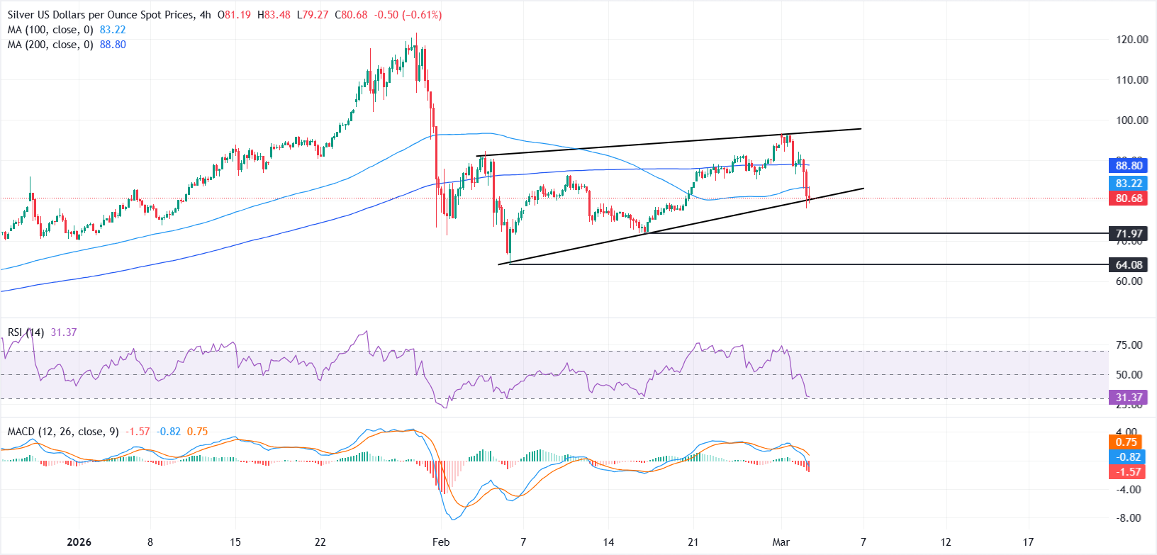 Pada saat berita ini ditulis, XAG/USD diperdagangkan di sekitar $80,68, melayang di dekat level terendahnya dalam lebih dari seminggu.