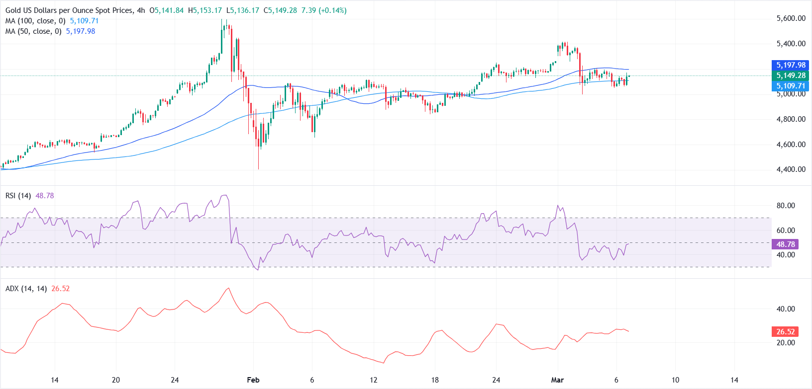 Pada saat berita ini ditulis, XAU/USD diperdagangkan sekitar $5.140 setelah memantul dari terendah harian di dekat $5.062.