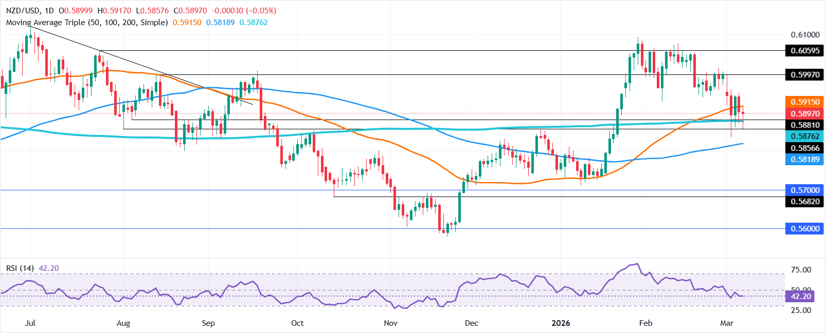 - NZD/USD stabil di dekat 0,5900 saat pembeli mempertahankan SMA 200-hari di 0,5874.