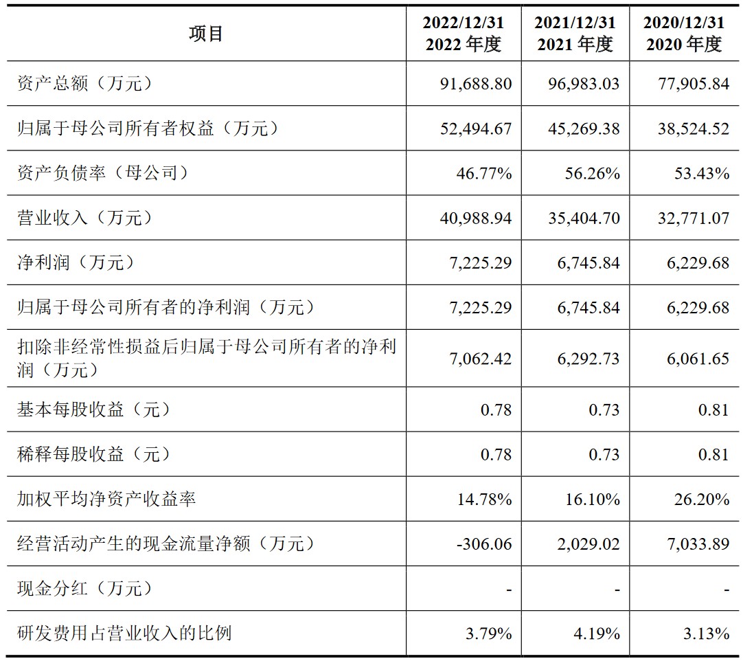 财务方面,于2020年度、2021年度及2022年度,公司实现营业收入分别约为3.28亿元、3.54亿元、4.10亿元。公司净利润分别约为6229.68万元、6745.84万元、7225.29万元人民币。