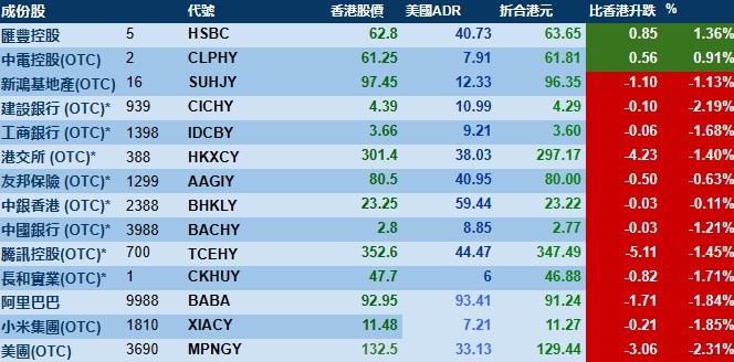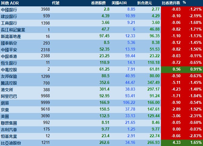 查投资获悉,周一美股三大指数集体收涨,港股ADR指数下跌,按比例计算,收报19252点,较香港收市跌160.58点或0.83%。